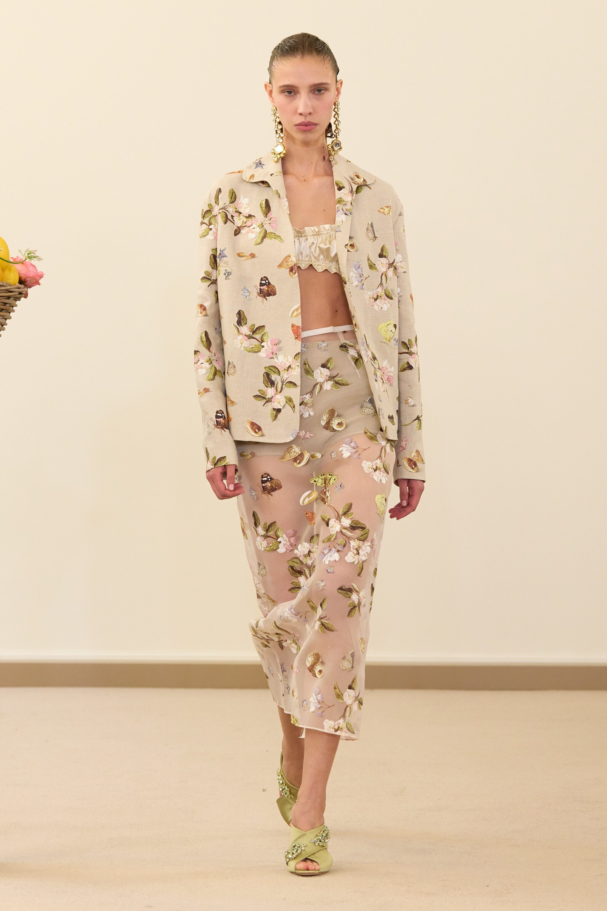 Fantasie floreali, gonne balloon e abiti con ruche e volant sfilano alla Paris Fashion Week sulla passerella Primavera/Estate 2026 di Giambattista Valli