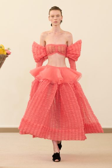 Fantasie floreali, gonne balloon e abiti con ruche e volant sfilano alla Paris Fashion Week sulla passerella Primavera/Estate 2026 di Giambattista Valli