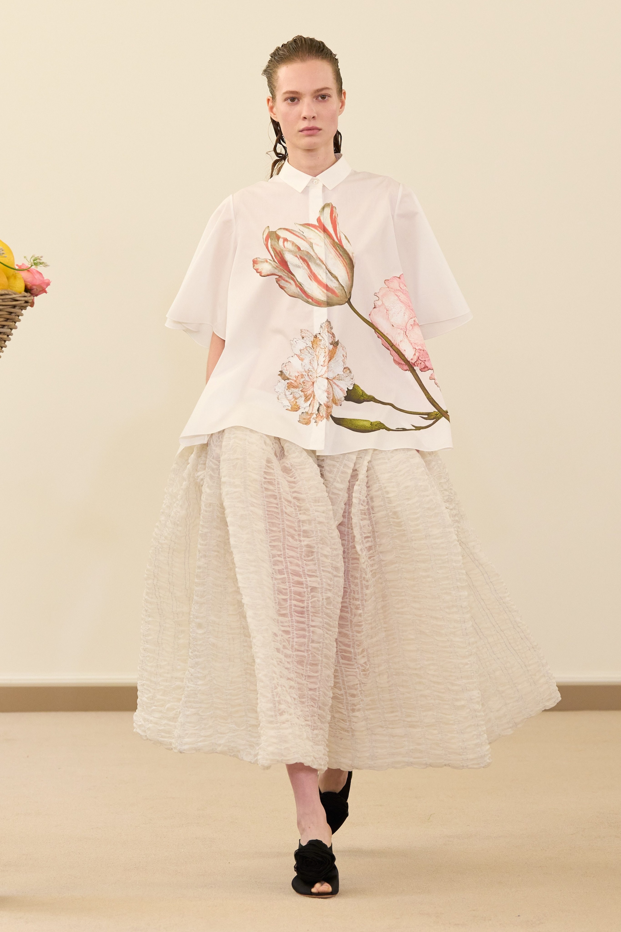 Fantasie floreali, gonne balloon e abiti con ruche e volant sfilano alla Paris Fashion Week sulla passerella Primavera/Estate 2026 di Giambattista Valli