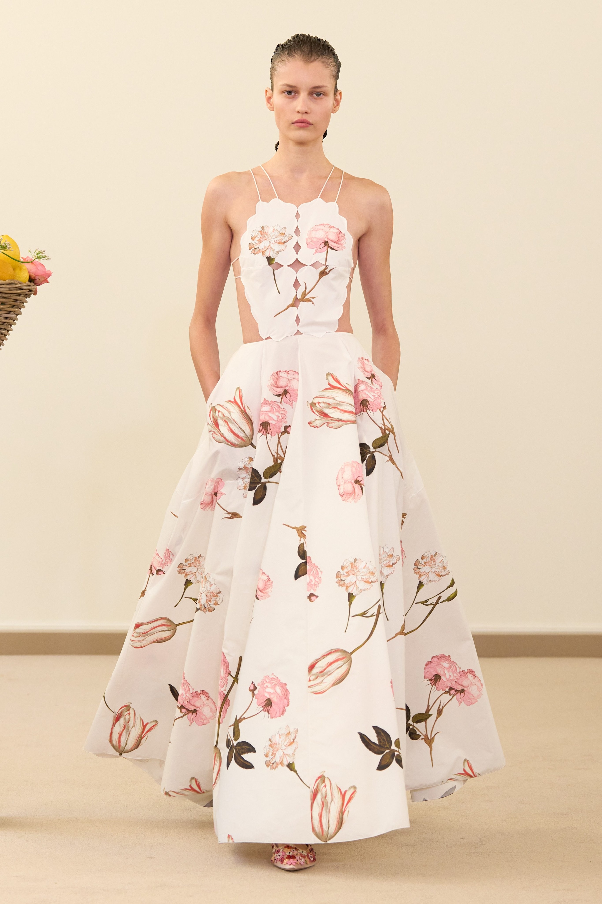 Fantasie floreali, gonne balloon e abiti con ruche e volant sfilano alla Paris Fashion Week sulla passerella Primavera/Estate 2026 di Giambattista Valli