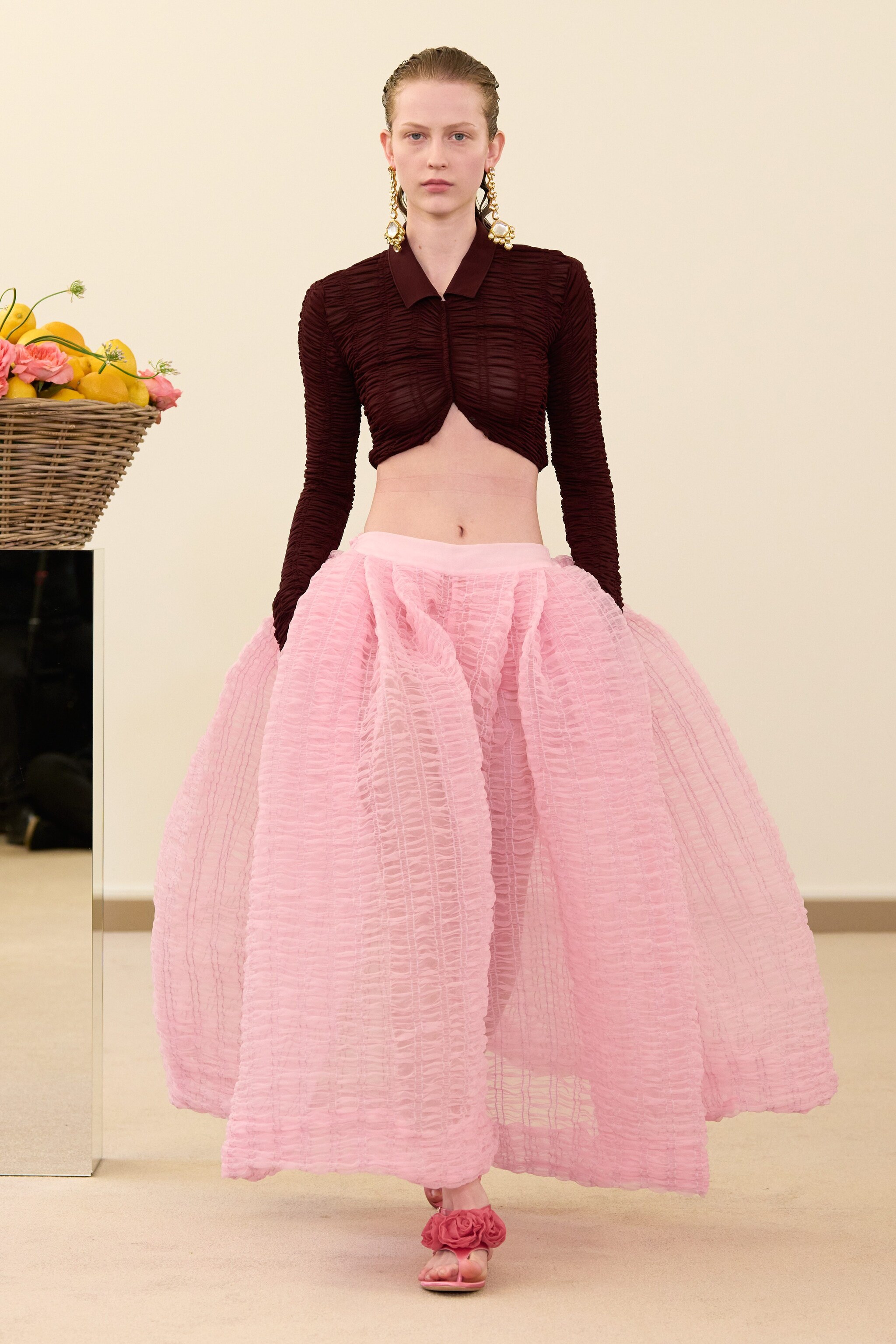 Fantasie floreali, gonne balloon e abiti con ruche e volant sfilano alla Paris Fashion Week sulla passerella Primavera/Estate 2026 di Giambattista Valli