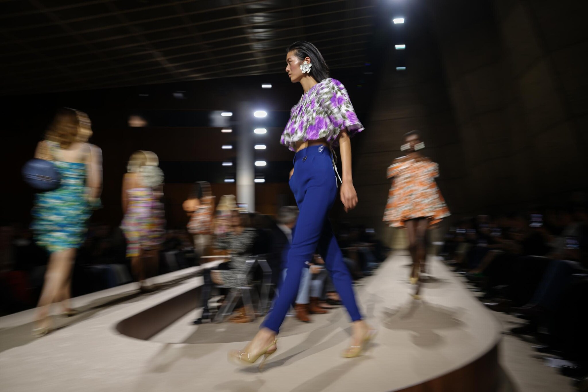 Abiti a fiori, completi con ruche in satin e giacche tecniche trasformate con l'aggiunta di dettagli romantic sfilano alla Paris Fashion Week sulla passerella Primavera/Estate 2026 di Chloé