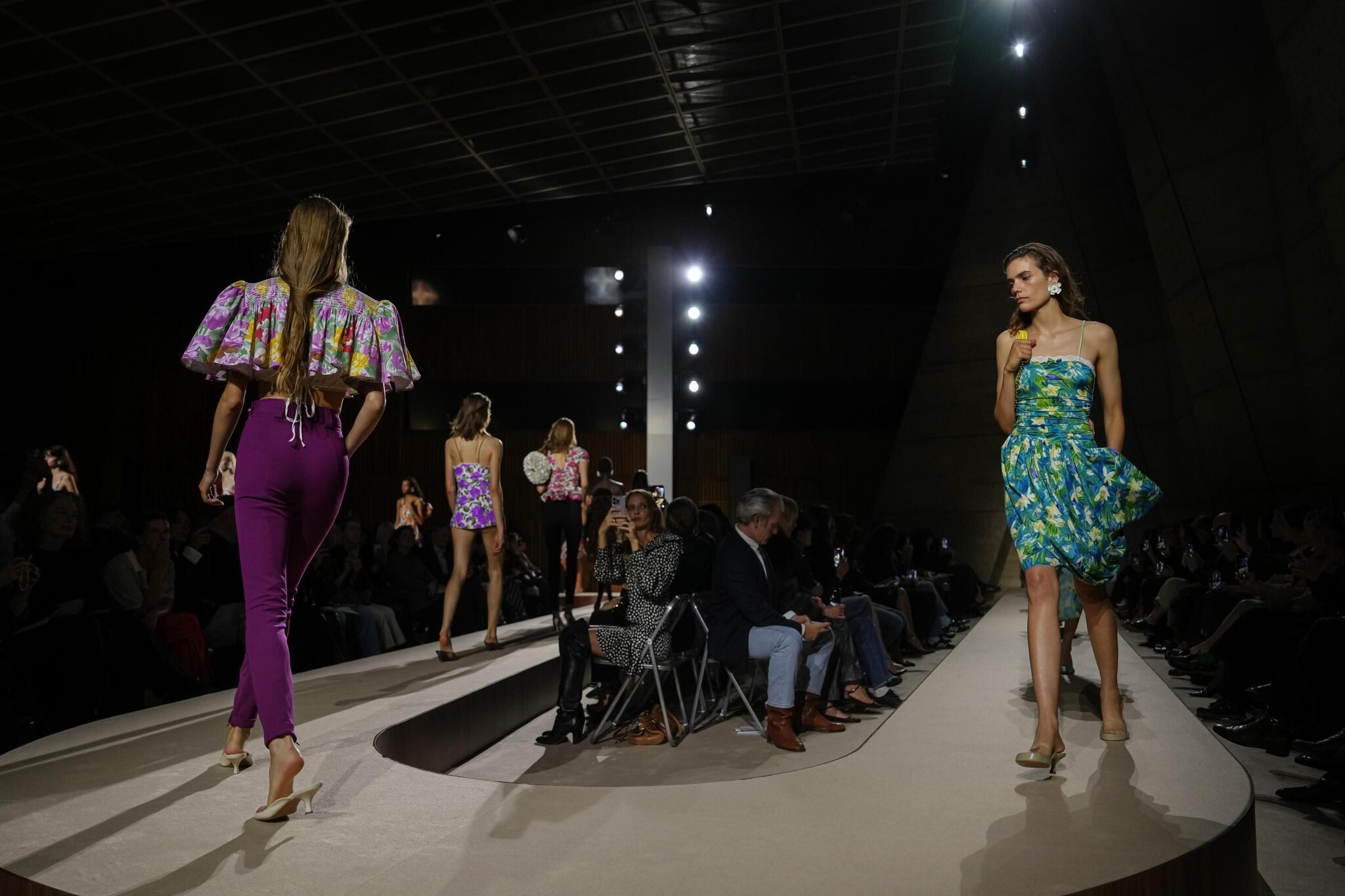 Abiti a fiori, completi con ruche in satin e giacche tecniche trasformate con l'aggiunta di dettagli romantic sfilano alla Paris Fashion Week sulla passerella Primavera/Estate 2026 di Chloé