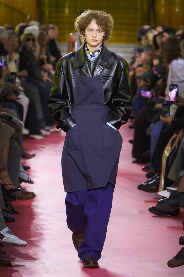 Miu Miu sfila alla Paris Fashion Week, sulla passerella Primavera/Estate 2025 Miuccia Prada sceglie il grembiule come simbolo per celebrare il lavoro in ogni forma, trasformando il capo aggiungendo pizzi, ruche e altri decori.