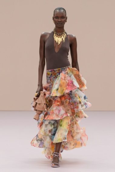 Abiti e gonne a balze, stampe floreali e completi in denim sfilano alla Paris Fashion Week sulla passerella Primavera/Estate 2026 di Zimmermann