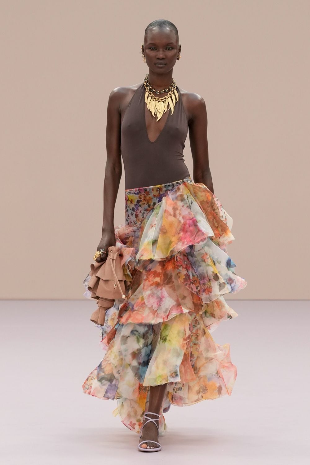 Abiti e gonne a balze, stampe floreali e completi in denim sfilano alla Paris Fashion Week sulla passerella Primavera/Estate 2026 di Zimmermann