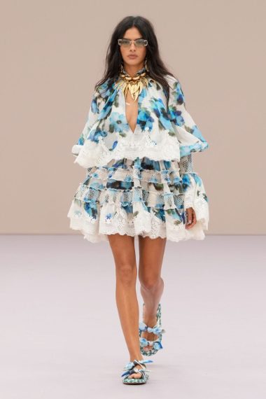 Abiti e gonne a balze, stampe floreali e completi in denim sfilano alla Paris Fashion Week sulla passerella Primavera/Estate 2026 di Zimmermann