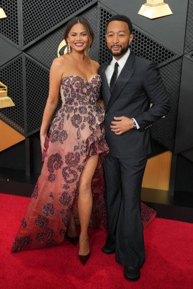 • Chrissy Teigen in Caroline’s Couture e John Legend