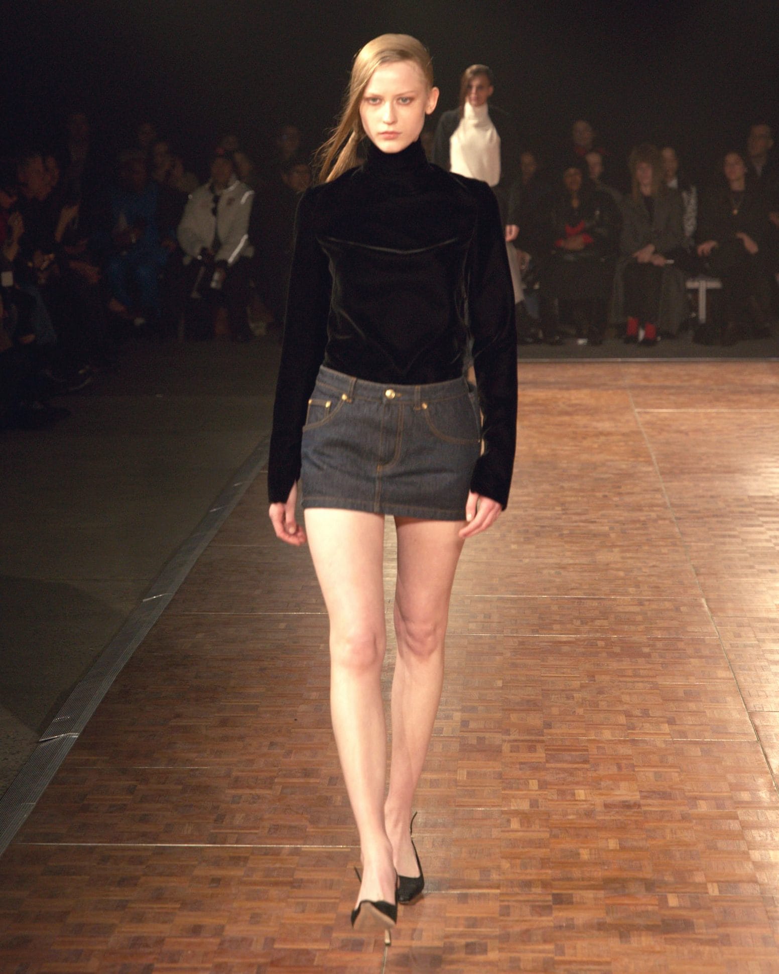 Abiti che sembrano fatti con foulard di seta, look in denim, lunghe frange e decori sparkling sfilano alla New York Fashion Week sulla passerella Autunno/Inverno 2026-2027 di Area