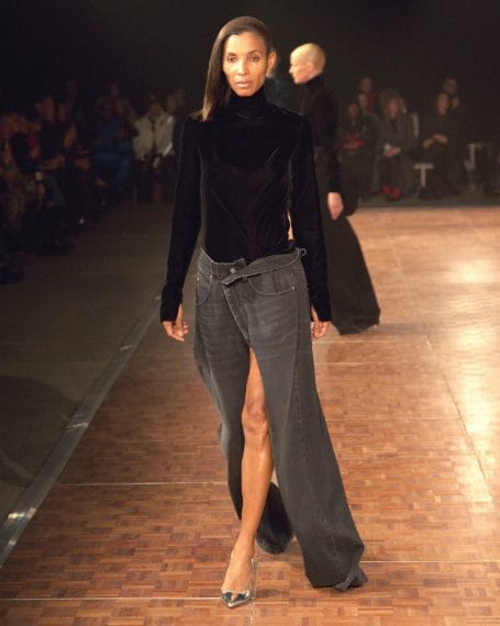 Abiti che sembrano fatti con foulard di seta, look in denim, lunghe frange e decori sparkling sfilano alla New York Fashion Week sulla passerella Autunno/Inverno 2026-2027 di Area