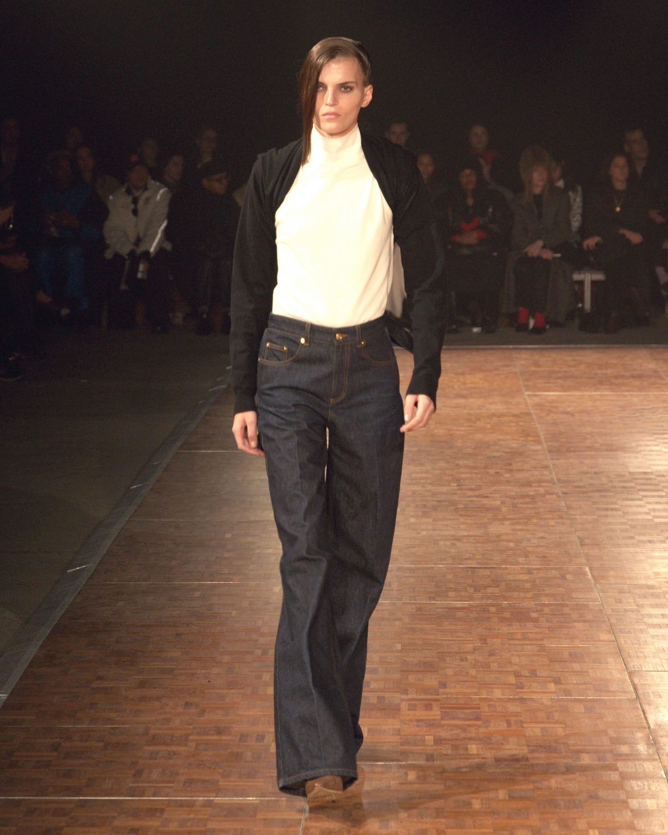 Abiti che sembrano fatti con foulard di seta, look in denim, lunghe frange e decori sparkling sfilano alla New York Fashion Week sulla passerella Autunno/Inverno 2026-2027 di Area