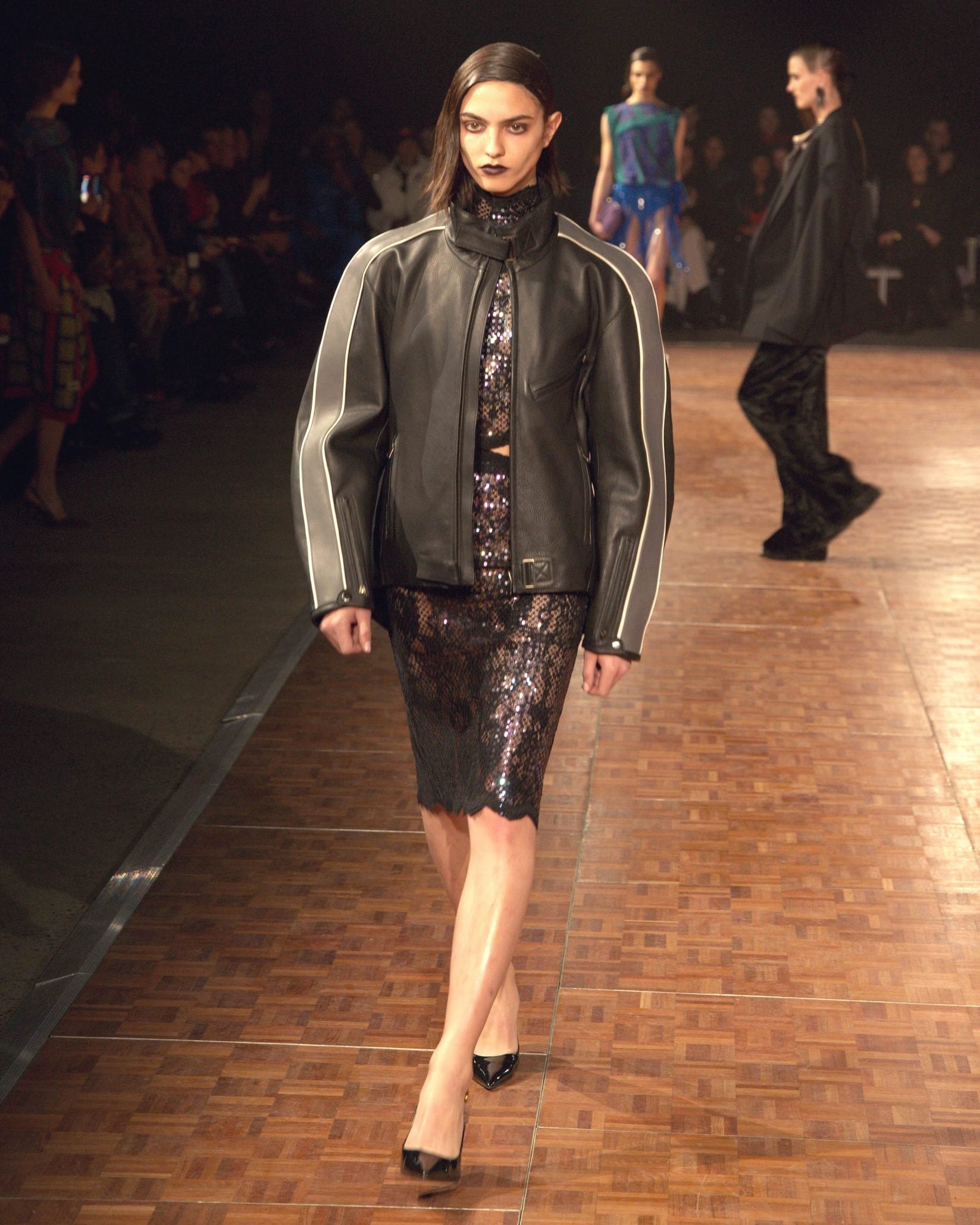 Abiti che sembrano fatti con foulard di seta, look in denim, lunghe frange e decori sparkling sfilano alla New York Fashion Week sulla passerella Autunno/Inverno 2026-2027 di Area
