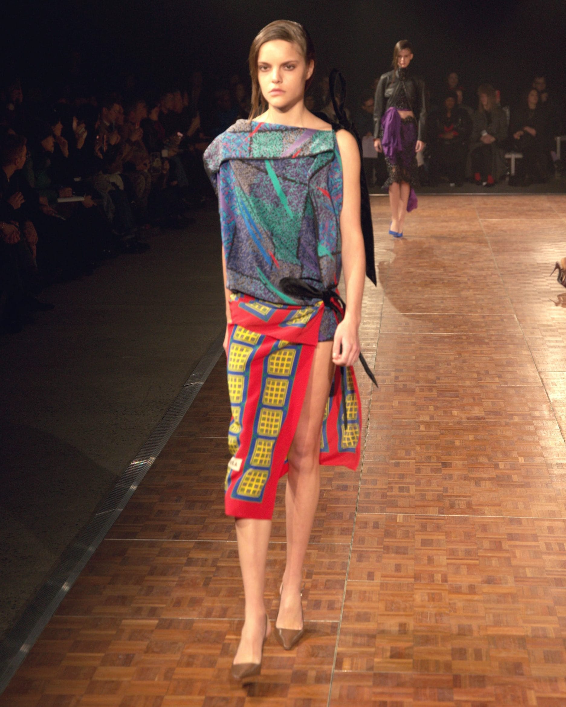 Abiti che sembrano fatti con foulard di seta, look in denim, lunghe frange e decori sparkling sfilano alla New York Fashion Week sulla passerella Autunno/Inverno 2026-2027 di Area