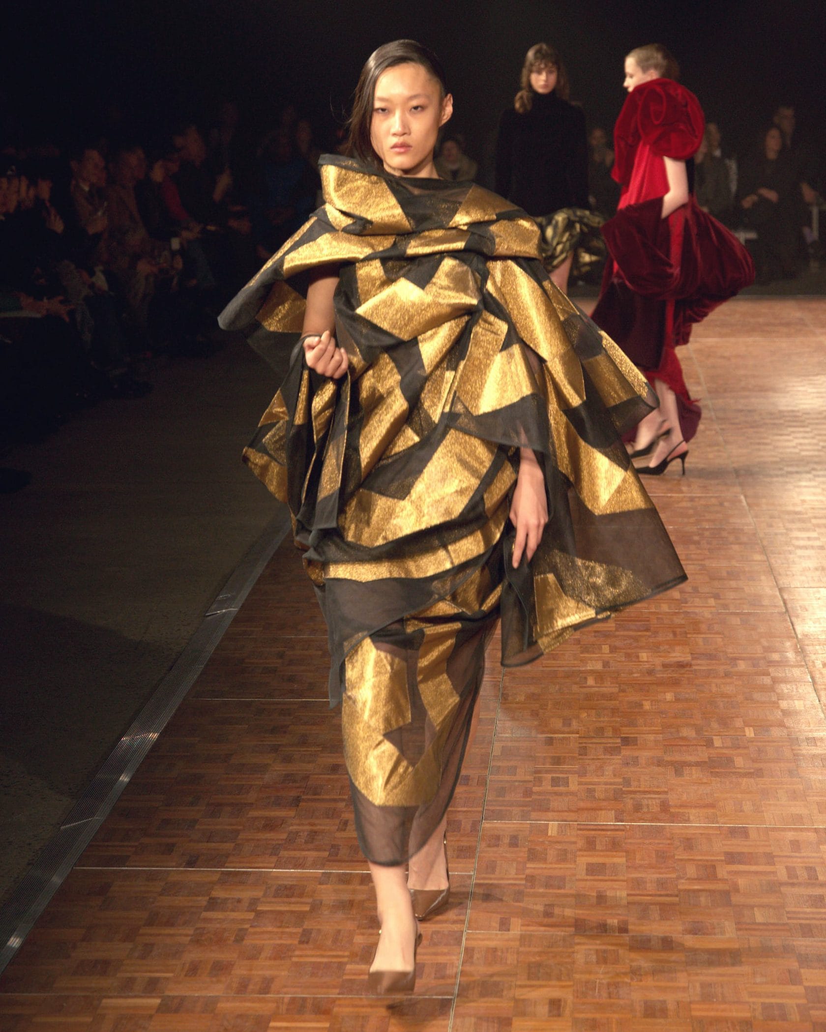 Abiti che sembrano fatti con foulard di seta, look in denim, lunghe frange e decori sparkling sfilano alla New York Fashion Week sulla passerella Autunno/Inverno 2026-2027 di Area