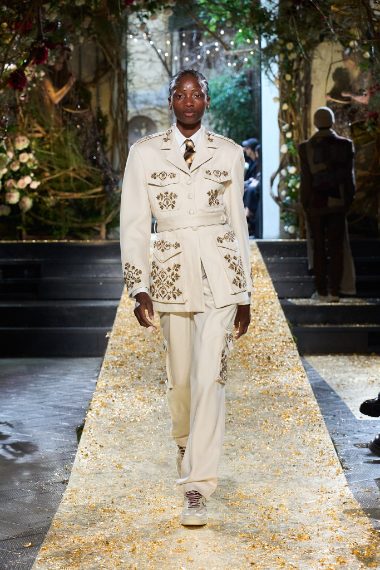 Ricami floreali e dettagli animalier, look in denim e completi rigati sfilano alla Milano Fashion Week sulla passerella Autunno/Inverno 2026-2027 di Antonio Marras.