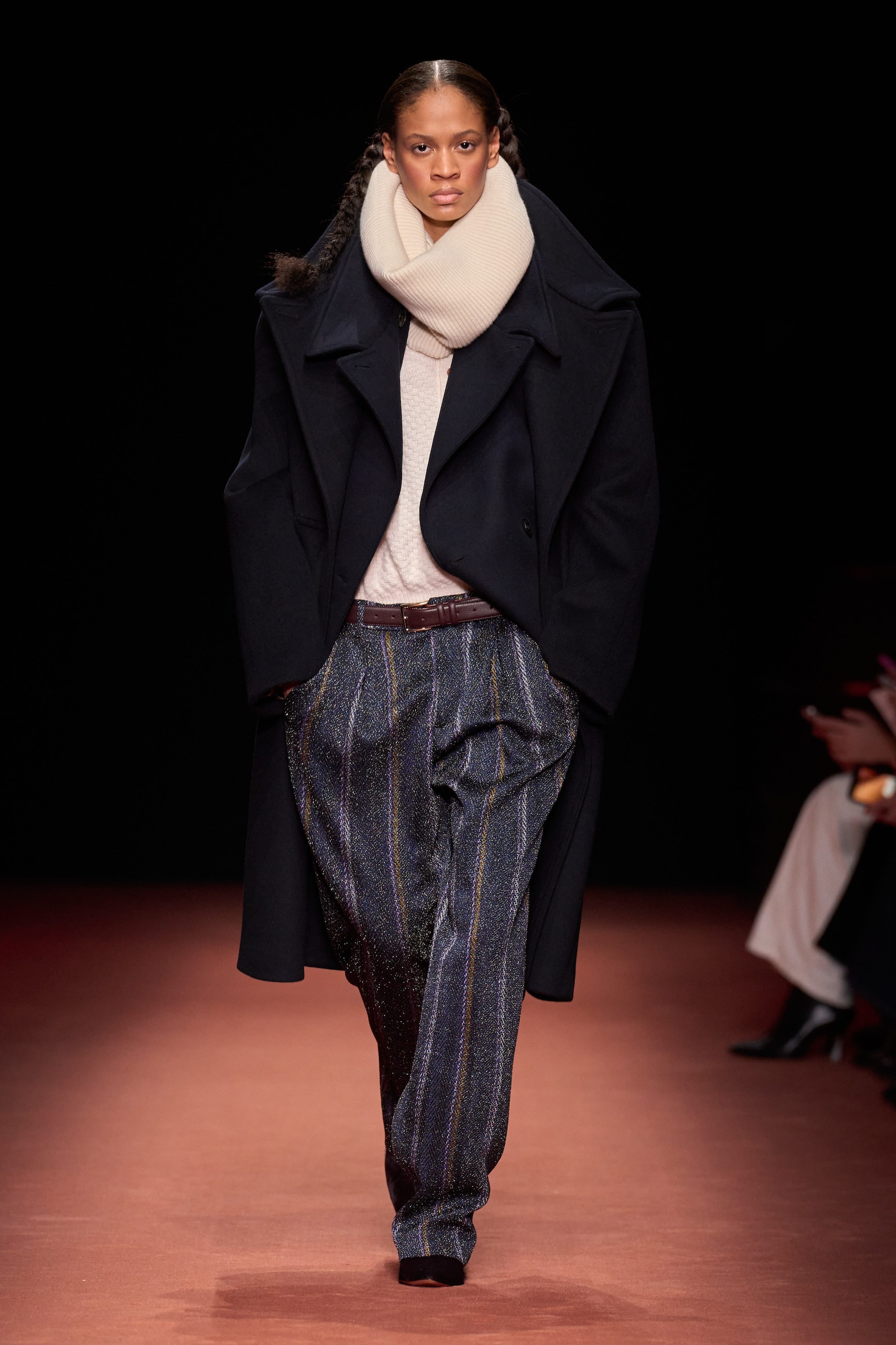 Cappotti e blazer oversize, completi in lana e ancora fantasie spigate o a righe sfilano alla Milano Fashion Week sulla passerella Autunno/Inverno 2026-2027 di Missoni.