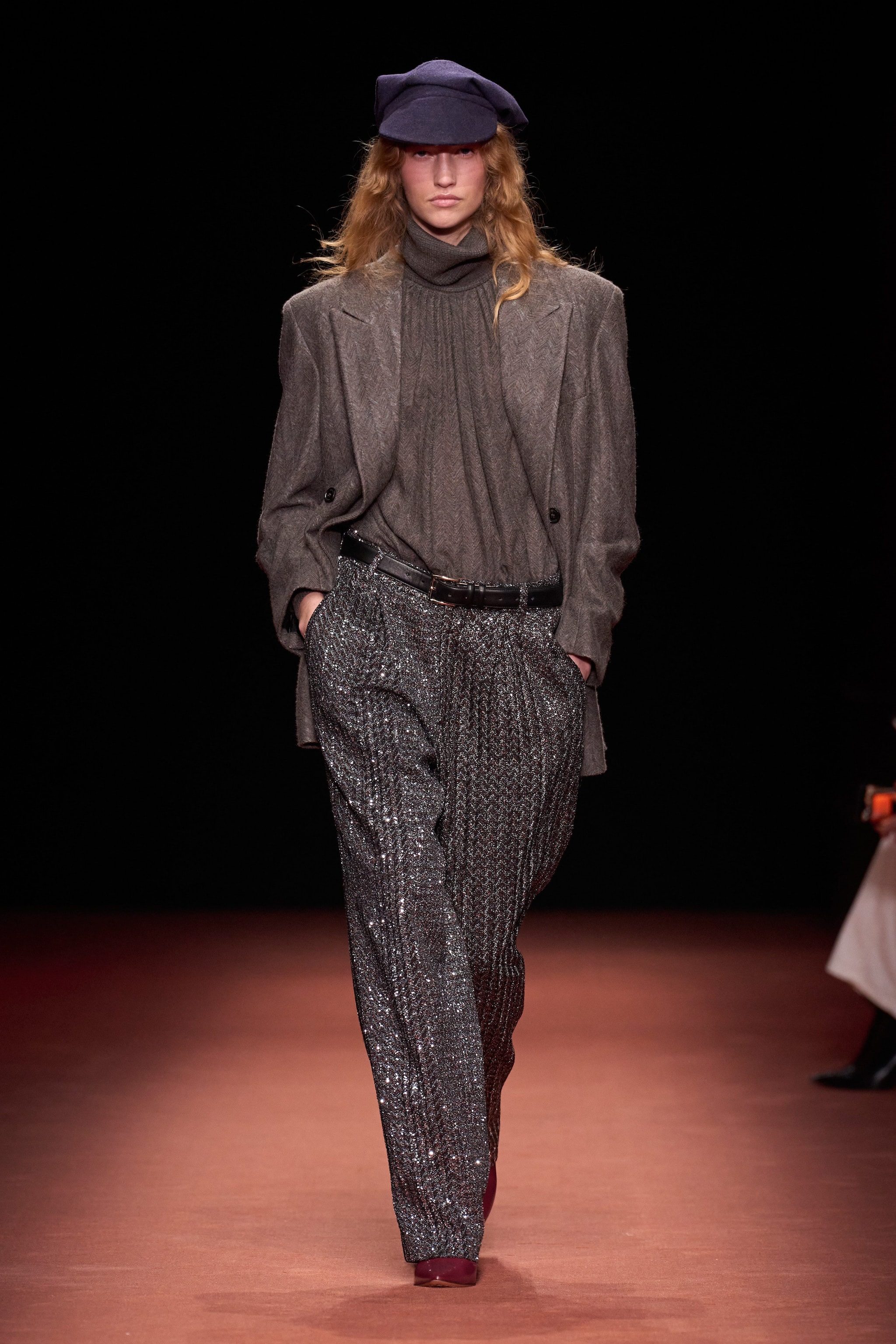 Cappotti e blazer oversize, completi in lana e ancora fantasie spigate o a righe sfilano alla Milano Fashion Week sulla passerella Autunno/Inverno 2026-2027 di Missoni.