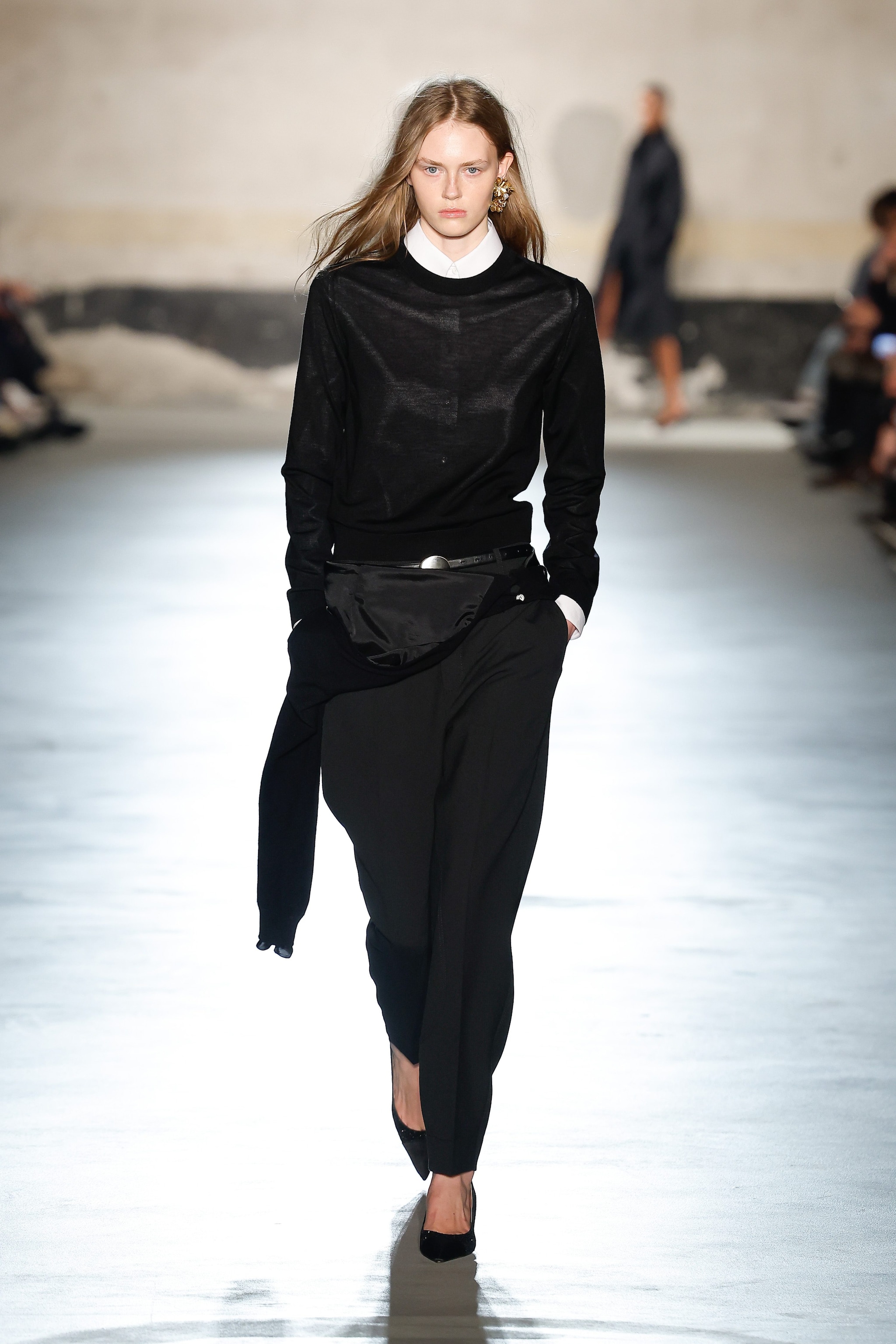 Abiti neri si alternano a capi argentati o in tessuto rosso e ancora bomber in pelle e vestiti coperti di paillettes sfilano alla Milano Fashion Week sulla passerella Autunno/Inverno 2026-2027 di N21.