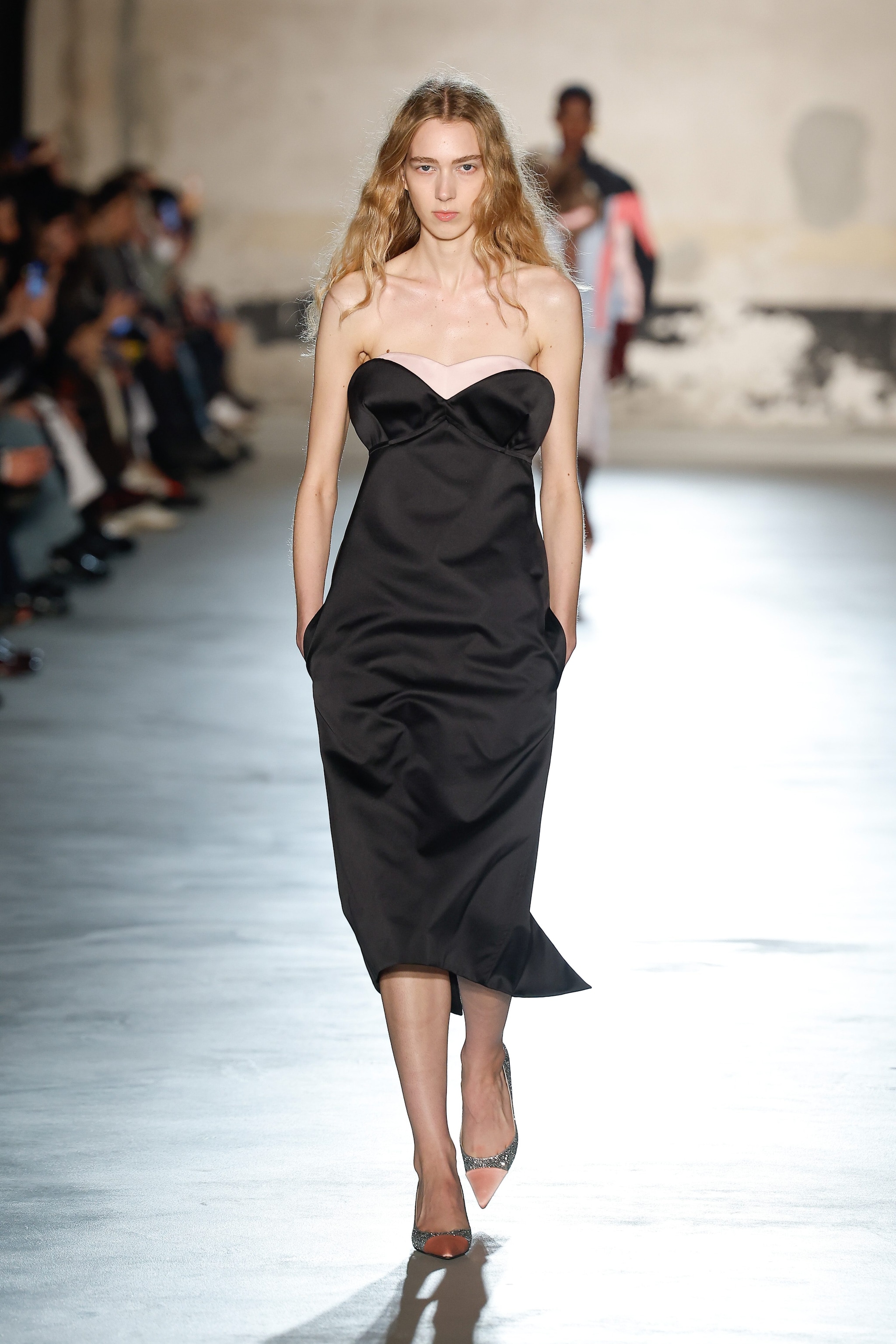 Abiti neri si alternano a capi argentati o in tessuto rosso e ancora bomber in pelle e vestiti coperti di paillettes sfilano alla Milano Fashion Week sulla passerella Autunno/Inverno 2026-2027 di N21.