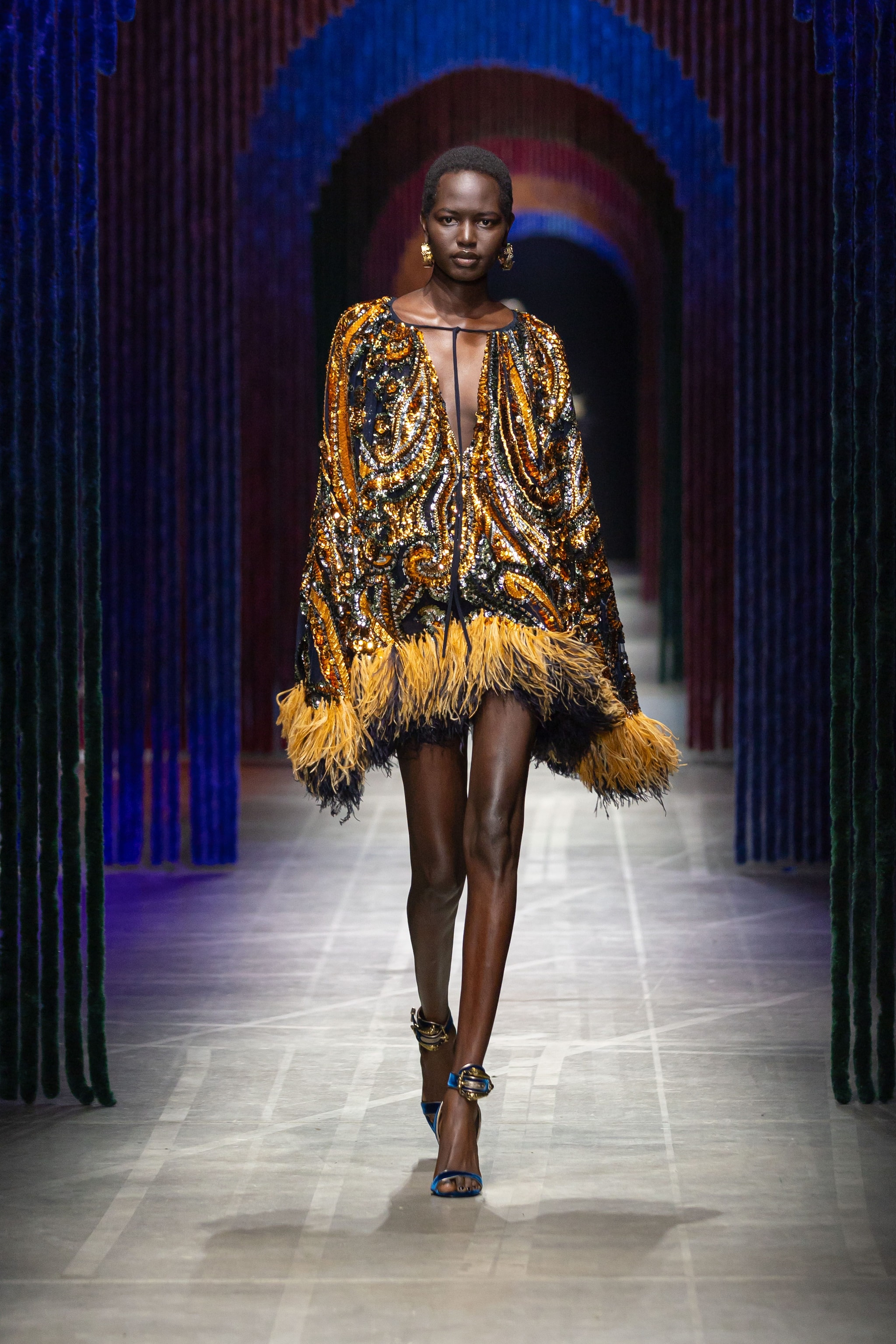 Cappotti e blazer d'ispirazione militare, mescolati con maxi pull dalle intricate lavorazioni e con abiti foulard, sfilano alla Milano Fashion Week sulla passerella Autunno/Inverno 2026-2027 di Etro.