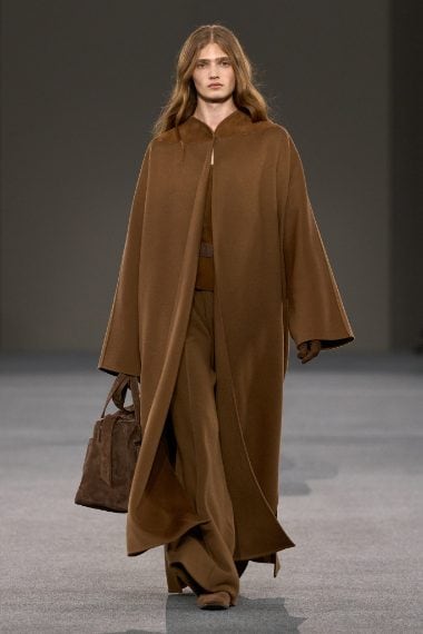 Cappotti e blazer con inserti in suede, linee pulite e abiti in maglia sfilano alla Milano Fashion Week sulla passerella Autunno/Inverno 2026-2027 di Max Mara