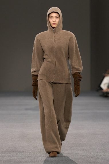 Cappotti e blazer con inserti in suede, linee pulite e abiti in maglia sfilano alla Milano Fashion Week sulla passerella Autunno/Inverno 2026-2027 di Max Mara