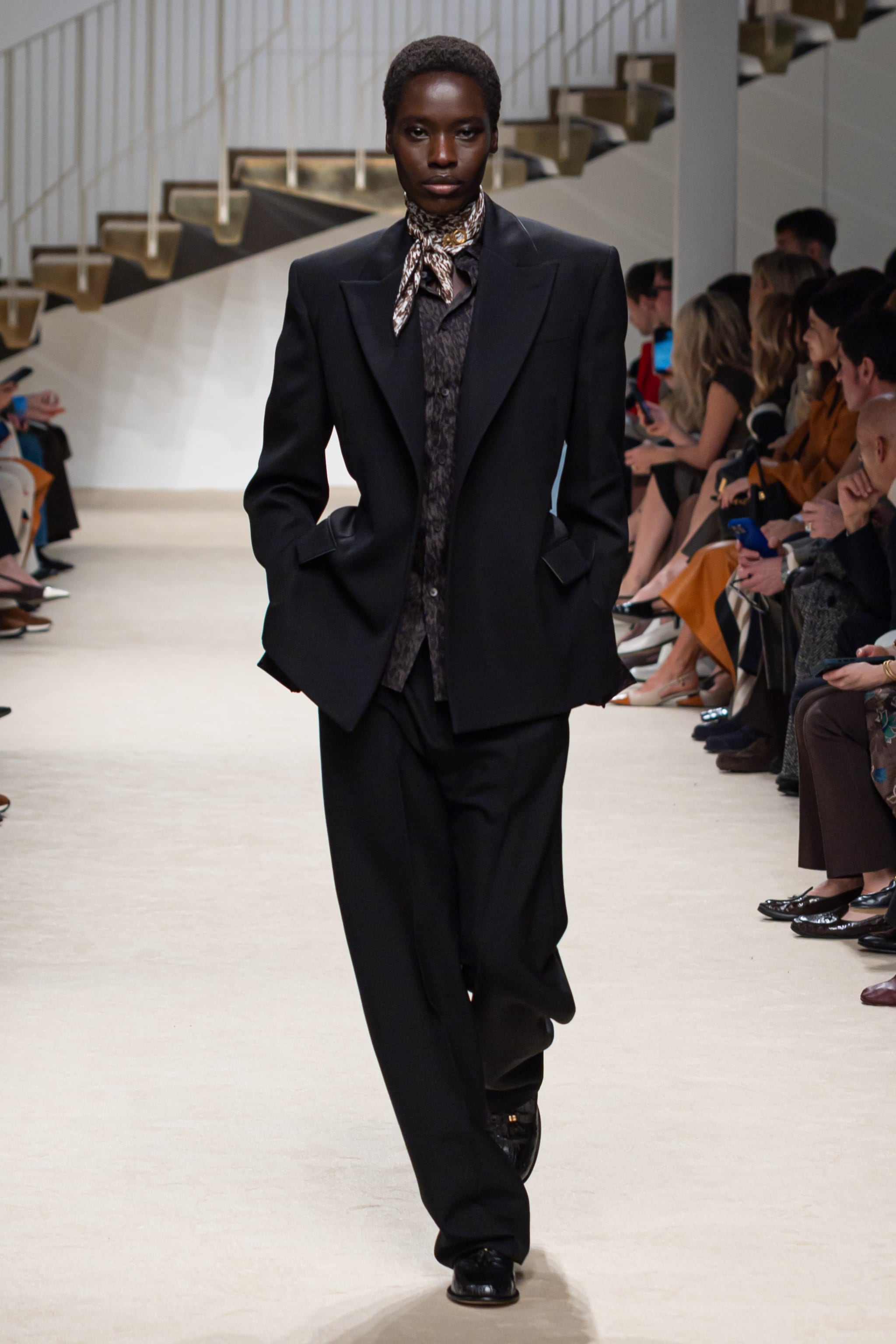 Ampie mantelle in lana, abiti foulard, cappotti furry e blazer dai rever a lancia sfilano alla Milano Fashion Week sulla passerella Autunno/Inverno 2026-2027 di Tod's