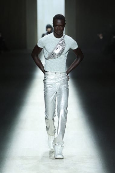 Look in pelle e pantaloni slim fit, marsupi logati e piumini con colli in pelliccia, maxi trench e blazer oversize sfilano alla Milano Fashion Week sulla passerella Autunno/Inverno 2026-2027 di Gucci by Demna.