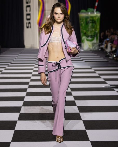 Mini abiti in seta con stampe pop, top a bustier colorati, completi floreali e capi a stampa pitone sfilano alla Milano Fashion Week sulla passerella Autunno/Inverno 2026-2027 di GCDS.