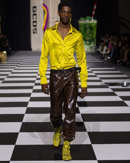 Mini abiti in seta con stampe pop, top a bustier colorati, completi floreali e capi a stampa pitone sfilano alla Milano Fashion Week sulla passerella Autunno/Inverno 2026-2027 di GCDS.