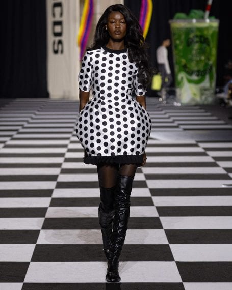 Mini abiti in seta con stampe pop, top a bustier colorati, completi floreali e capi a stampa pitone sfilano alla Milano Fashion Week sulla passerella Autunno/Inverno 2026-2027 di GCDS.