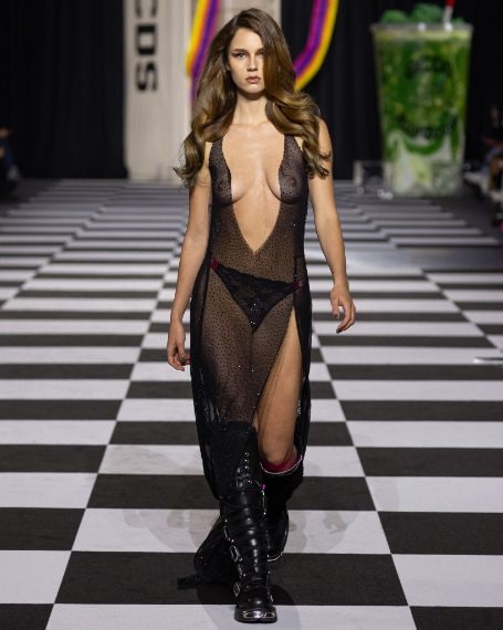 Mini abiti in seta con stampe pop, top a bustier colorati, completi floreali e capi a stampa pitone sfilano alla Milano Fashion Week sulla passerella Autunno/Inverno 2026-2027 di GCDS.