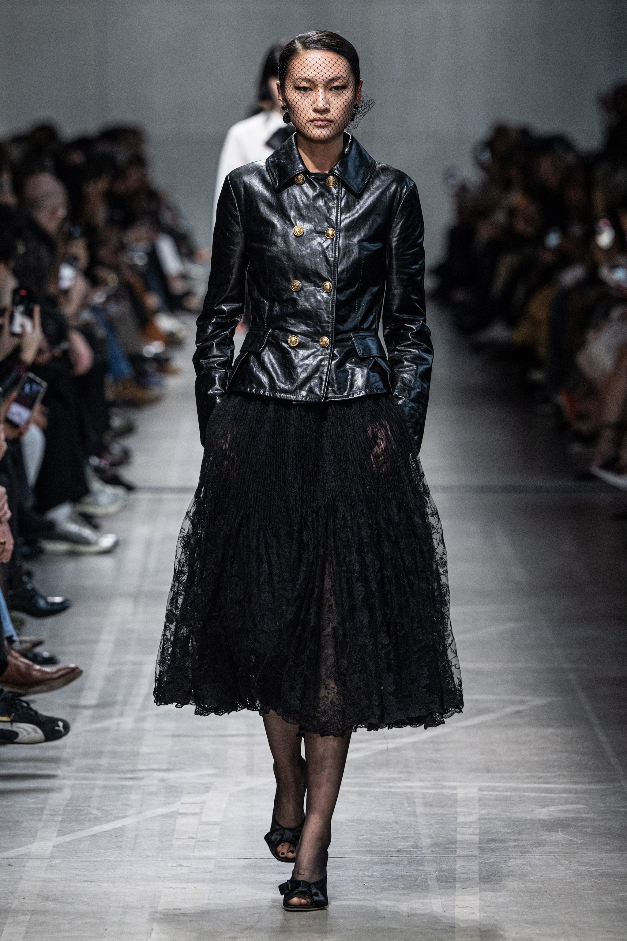 Cappotti e giacche doppio petto d'ispirazione militare, lunghi cardigan in lana e slipdress con dettagli in pizzo sfilano alla Milano Fashion Week sulla passerella Autunno/Inverno 2026-2027 di Ermanno Scervino