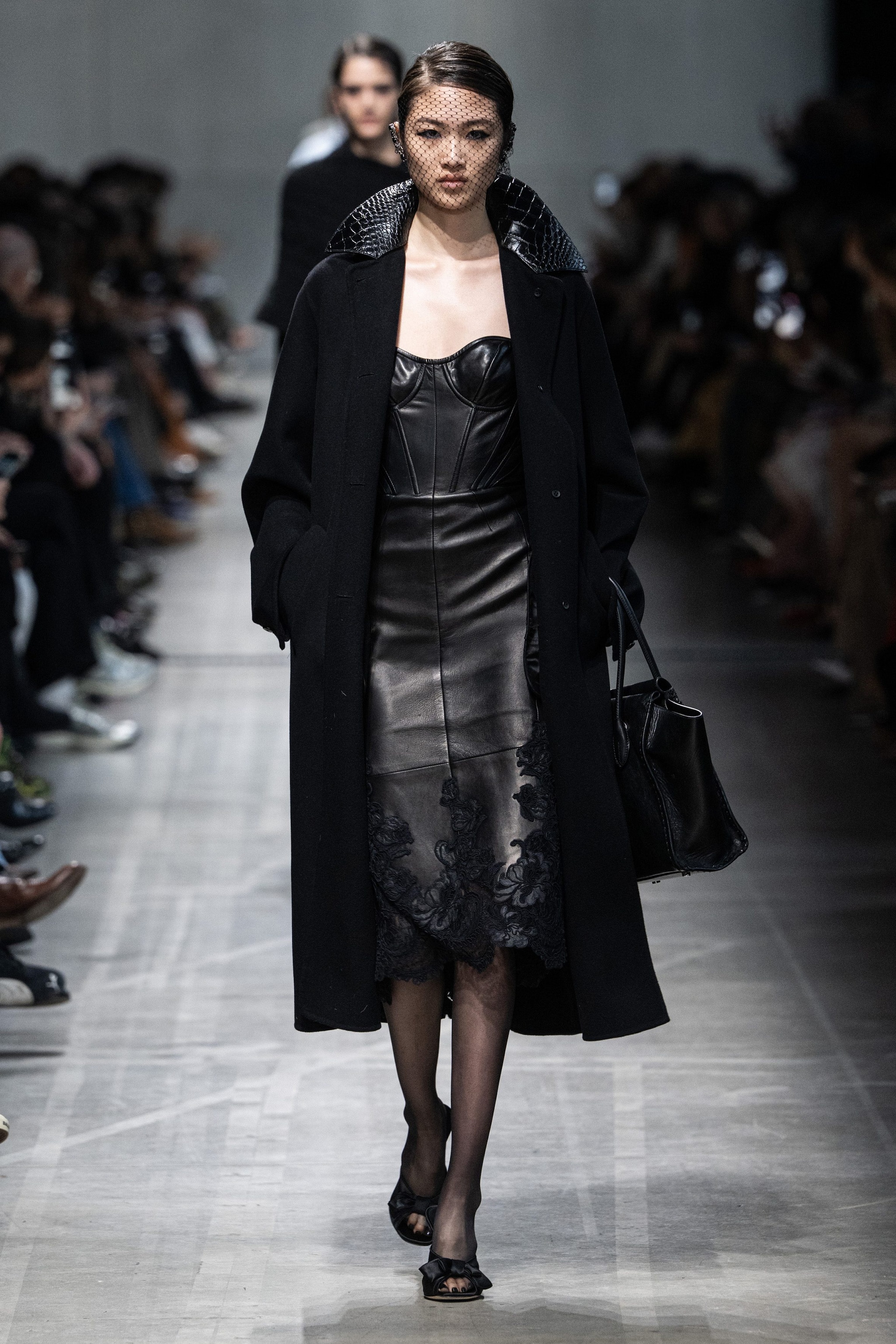 Cappotti e giacche doppio petto d'ispirazione militare, lunghi cardigan in lana e slipdress con dettagli in pizzo sfilano alla Milano Fashion Week sulla passerella Autunno/Inverno 2026-2027 di Ermanno Scervino
