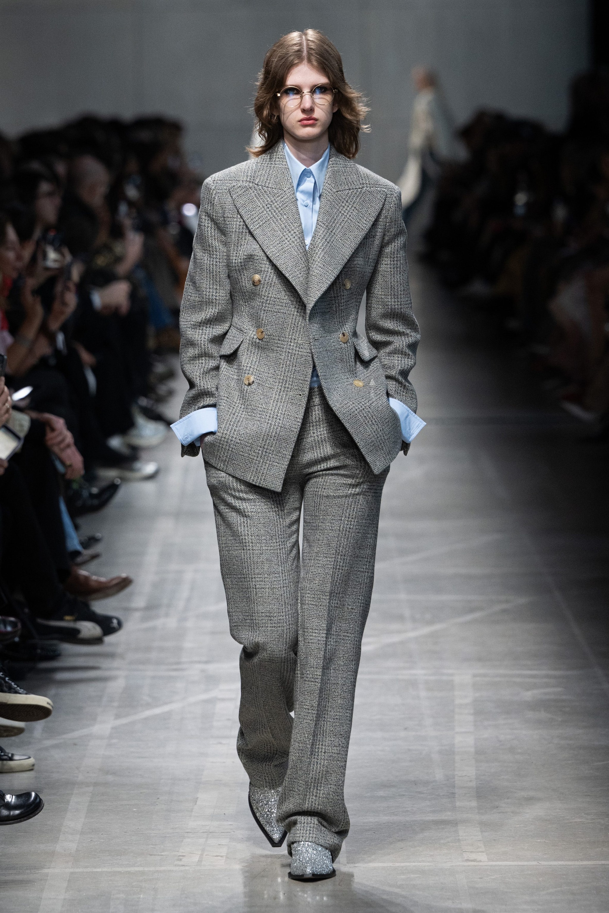 Cappotti e giacche doppio petto d'ispirazione militare, lunghi cardigan in lana e slipdress con dettagli in pizzo sfilano alla Milano Fashion Week sulla passerella Autunno/Inverno 2026-2027 di Ermanno Scervino