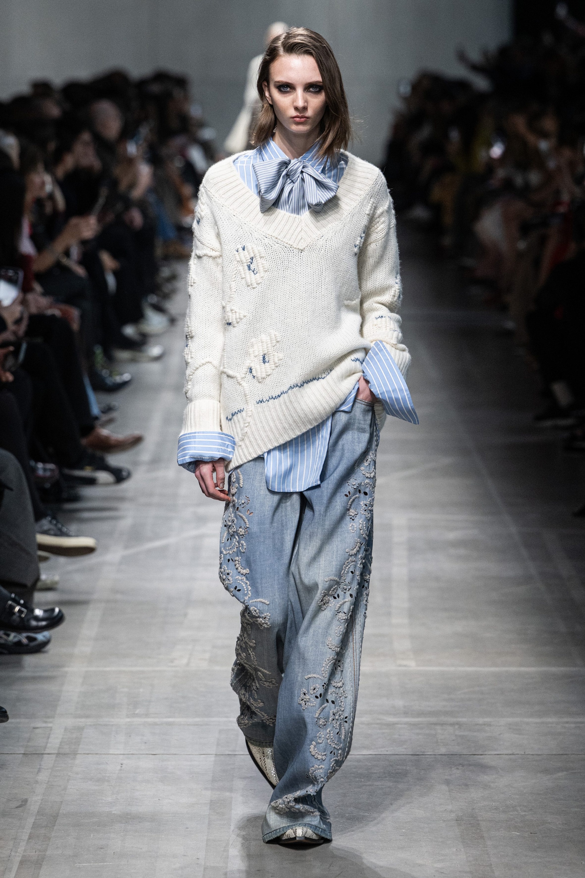 Cappotti e giacche doppio petto d'ispirazione militare, lunghi cardigan in lana e slipdress con dettagli in pizzo sfilano alla Milano Fashion Week sulla passerella Autunno/Inverno 2026-2027 di Ermanno Scervino