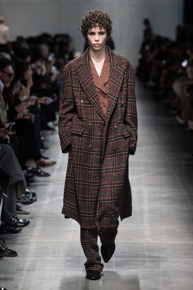 Cappotti e giacche doppio petto d'ispirazione militare, lunghi cardigan in lana e slipdress con dettagli in pizzo sfilano alla Milano Fashion Week sulla passerella Autunno/Inverno 2026-2027 di Ermanno Scervino