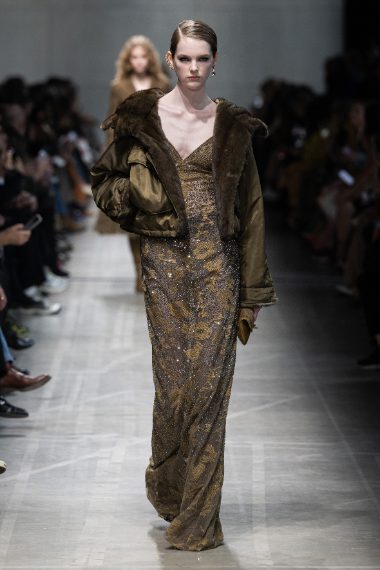 Cappotti e giacche doppio petto d'ispirazione militare, lunghi cardigan in lana e slipdress con dettagli in pizzo sfilano alla Milano Fashion Week sulla passerella Autunno/Inverno 2026-2027 di Ermanno Scervino