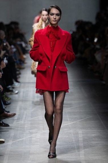 Cappotti e giacche doppio petto d'ispirazione militare, lunghi cardigan in lana e slipdress con dettagli in pizzo sfilano alla Milano Fashion Week sulla passerella Autunno/Inverno 2026-2027 di Ermanno Scervino
