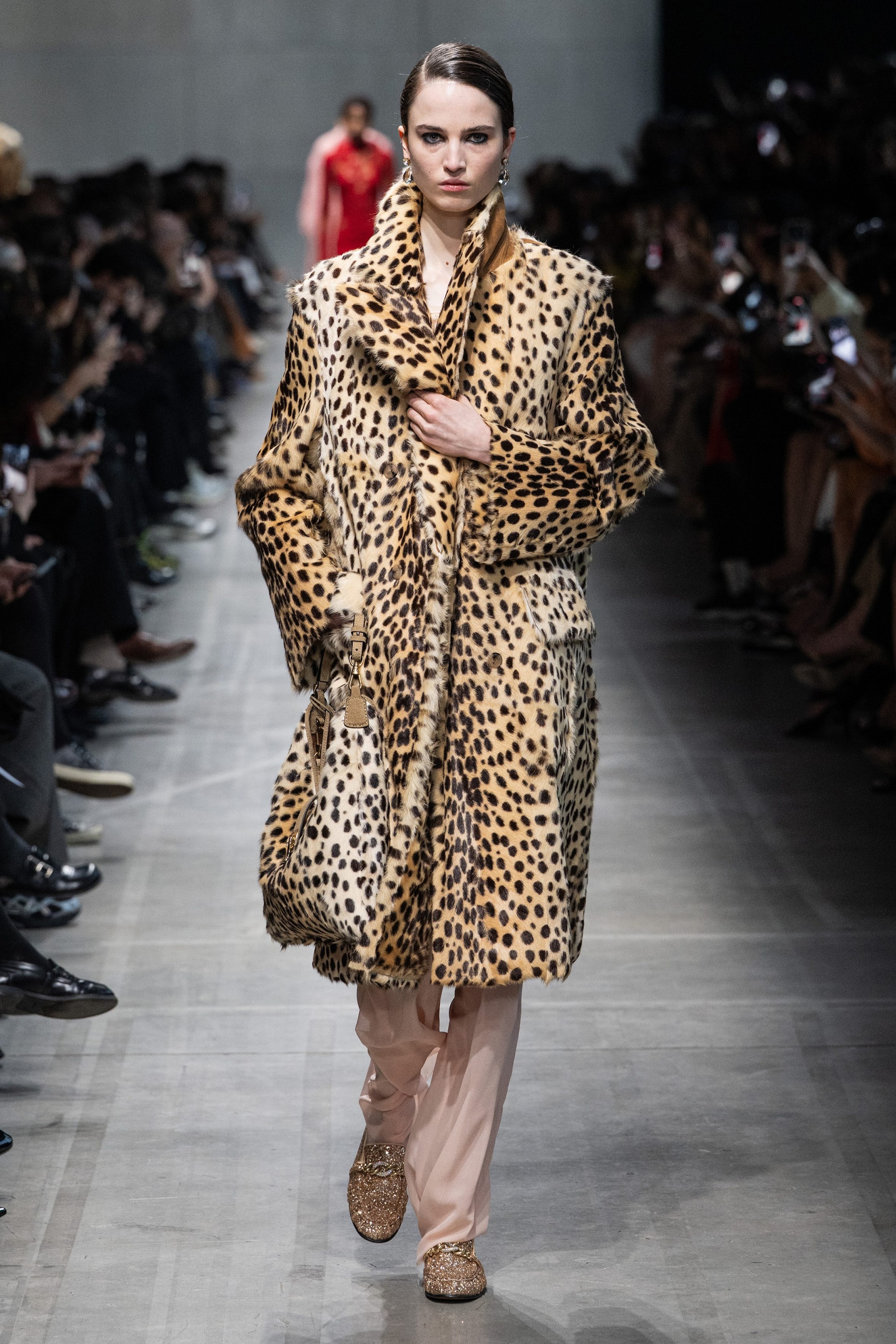 Cappotti e giacche doppio petto d'ispirazione militare, lunghi cardigan in lana e slipdress con dettagli in pizzo sfilano alla Milano Fashion Week sulla passerella Autunno/Inverno 2026-2027 di Ermanno Scervino