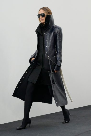 Giacche e cappotti dal collo a imbuto, mini dress in pelle e trench vernice sfilano alla Paris Fashion Week sulla passerella Autunno/Inverno 2026-2027 di Courreges