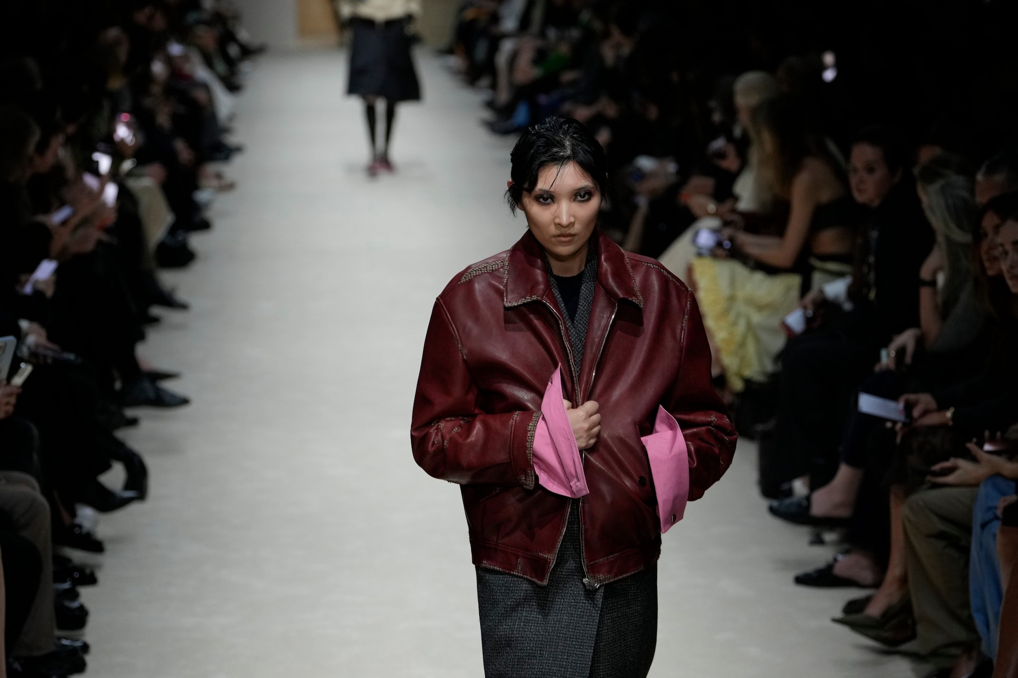Maglioni con la zip, gonne longuette con decori di cristalli, accostamenti di colore audaci e abiti che sembrano strappati sfilano alla Milano Fashion Week sulla passerella Autunno/Inverno 2026-2027 di Prada