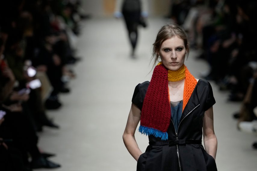 Maglioni con la zip, gonne longuette con decori di cristalli, accostamenti di colore audaci e abiti che sembrano strappati sfilano alla Milano Fashion Week sulla passerella Autunno/Inverno 2026-2027 di Prada