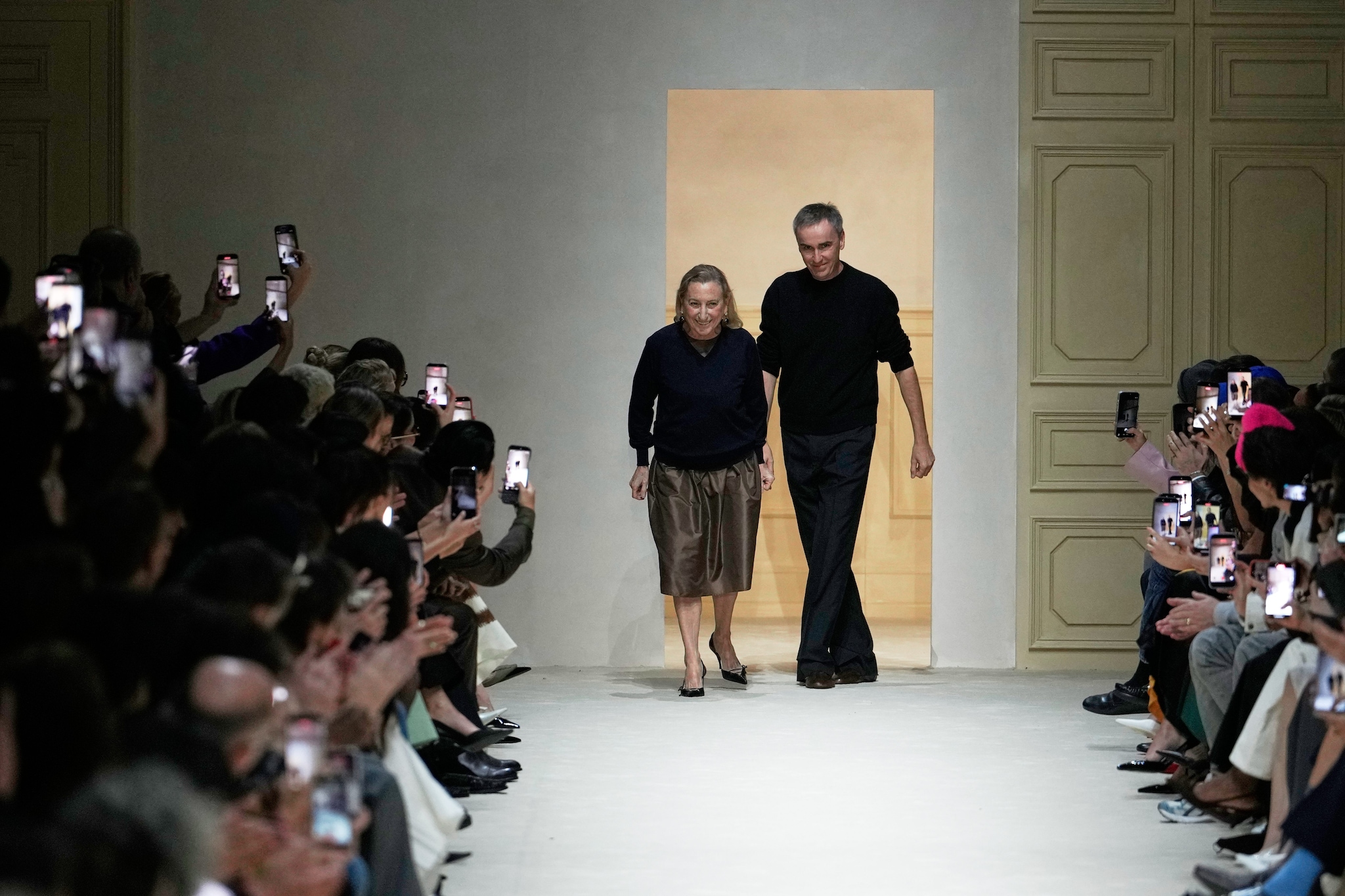 Maglioni con la zip, gonne longuette con decori di cristalli, accostamenti di colore audaci e abiti che sembrano strappati sfilano alla Milano Fashion Week sulla passerella Autunno/Inverno 2026-2027 di Prada