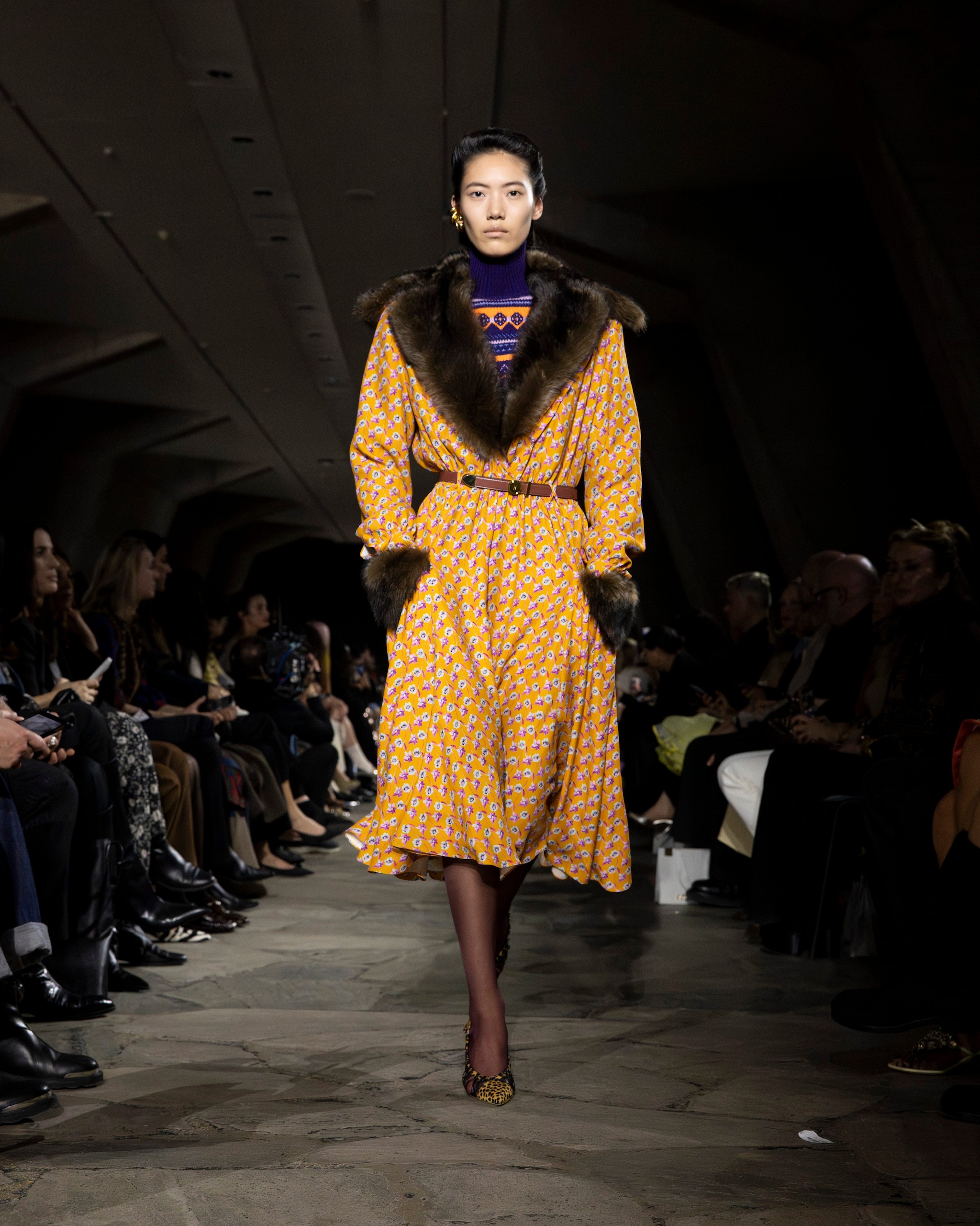 Capi check mescolati con abiti dalle fantasie floreali, look in layering composti a strati, decori lucenti e bomber in pelliccia eco sfilano alla Paris Fashion Week sulla passerella Autunno/Inverno 2026-2027 di Rabanne