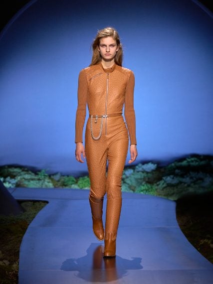 Jumpsuit aderenti, cappotti con inseti in pelle matelassé e giacche sciancrate sfilano alla Paris Fashion Week sulla passerella Autunno/Inverno 2026-2027 di Hermes