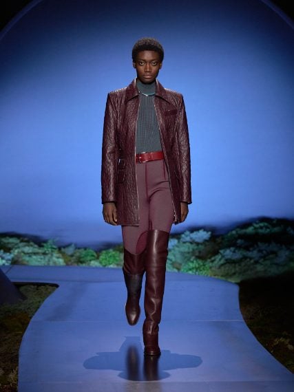 Jumpsuit aderenti, cappotti con inseti in pelle matelassé e giacche sciancrate sfilano alla Paris Fashion Week sulla passerella Autunno/Inverno 2026-2027 di Hermes