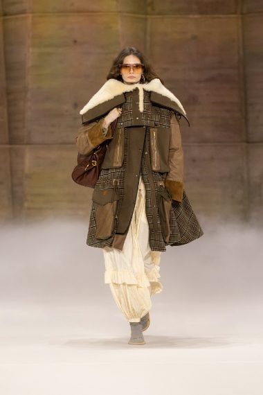 Lunghi abiti dalla stampa a quadri, look in stile folk, cappe e outfit colorati sfilano alla Paris Fashion Week sulla passerella Autunno/Inverno 2026-2027 di Chloé