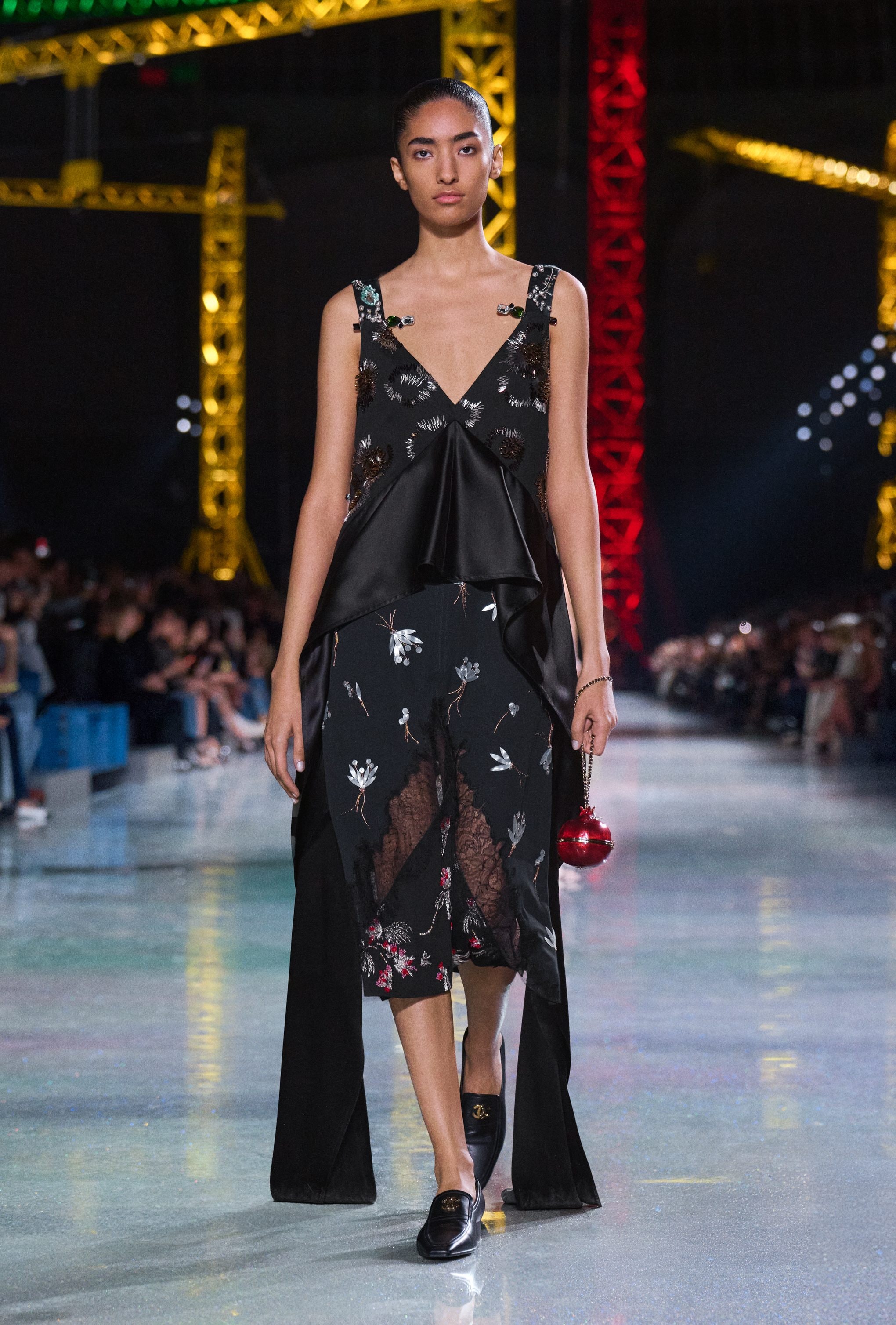Abiti in seta o coperti di macro paillettes, completi in lana, fantasie a quadri maxi blazer e gonne a vita bassissima sfilano alla Paris Fashion Week sulla passerella Autunno/Inverno 2026-2027 di Chanel