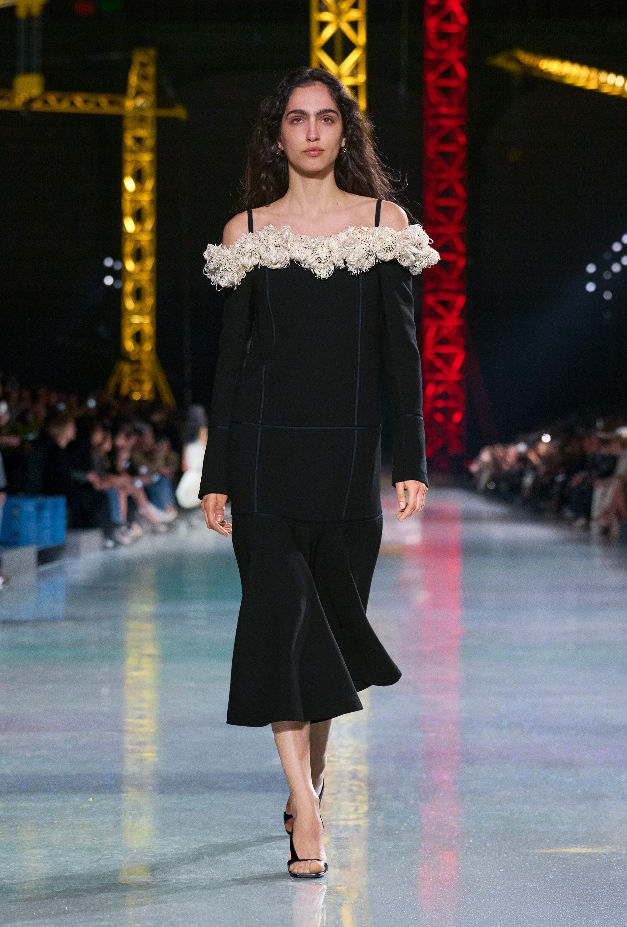 Abiti in seta o coperti di macro paillettes, completi in lana, fantasie a quadri maxi blazer e gonne a vita bassissima sfilano alla Paris Fashion Week sulla passerella Autunno/Inverno 2026-2027 di Chanel